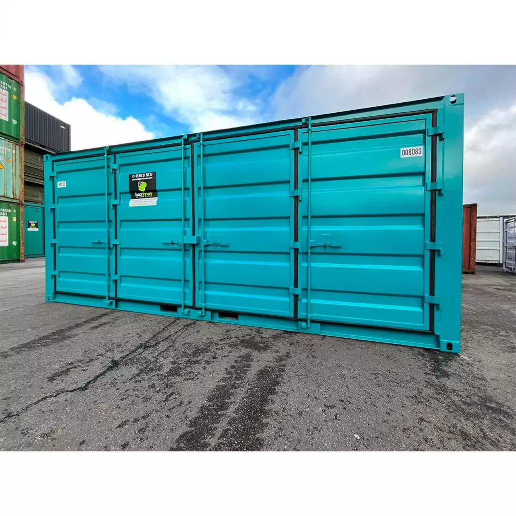 Le conteneur 20 pieds open side stockage s’utilise pour les chantiers de construction ou les activités de self-stockage. Le conteneur est très robuste grâce à son ouverture latérale. De plus, vous ne perdrez plus de place dans le conteneur grâce à son ouverture complète. Par ailleurs, le container Open Side 20 pieds à ouverture latérale possède une porte à double battant avec cache cadenas.