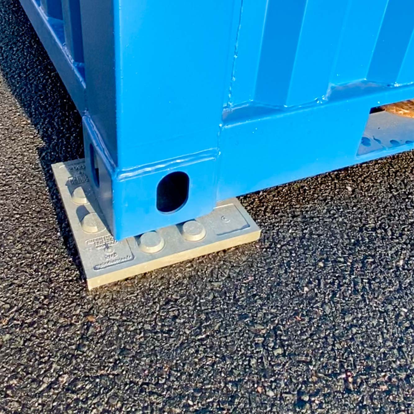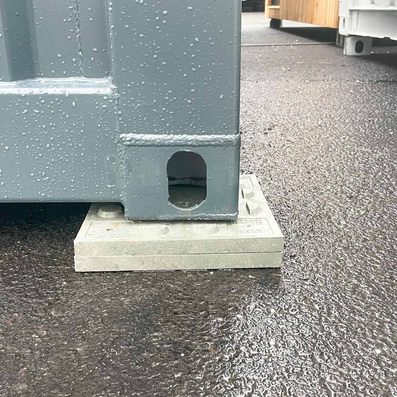 Nos cales pour conteneurs en polypropylène spécialement conçues pour positionner en toute sécurité votre container sur des sols durs. Ces supports garantissent une surélévation ou une mise à niveau pour le dépôt d’un conteneur sur sol dur.