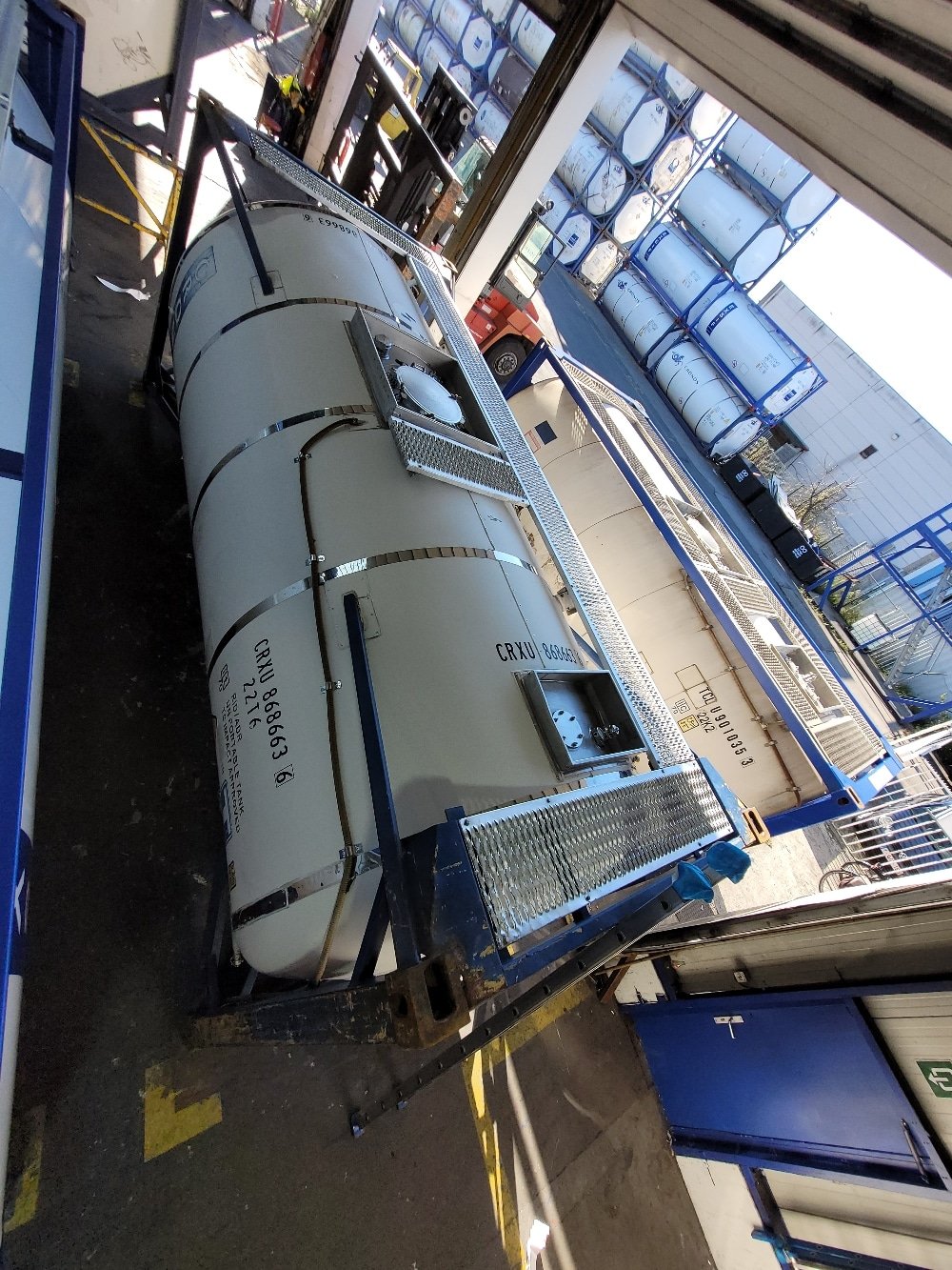 Ce conteneur citerne chimique 20 pieds occasion est disponible à l’achat sur le dépôt Le Havre. Le conteneur citerne 20 pieds, également appelé container tank, est conçu pour le transport et le stockage de divers types de produits liquides ou gazeux, tels que les liquides alimentaires, les produits chimiques et les hydrocarbures. Ce conteneur citerne 20 pieds est disponible à la vente à partir de 13 800€ HT.