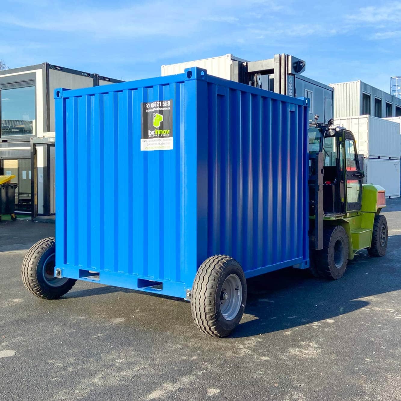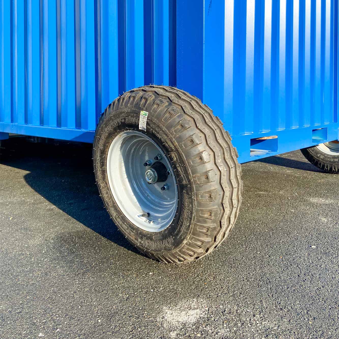 Nous recommandons d’installer 4 roues sur votre container afin de faciliter le déplacement de celui-ci. Nous proposons à la vente cet équipement afin de répondre à une problématique de déplacement de conteneurs maritimes sur des sites difficilement praticables.